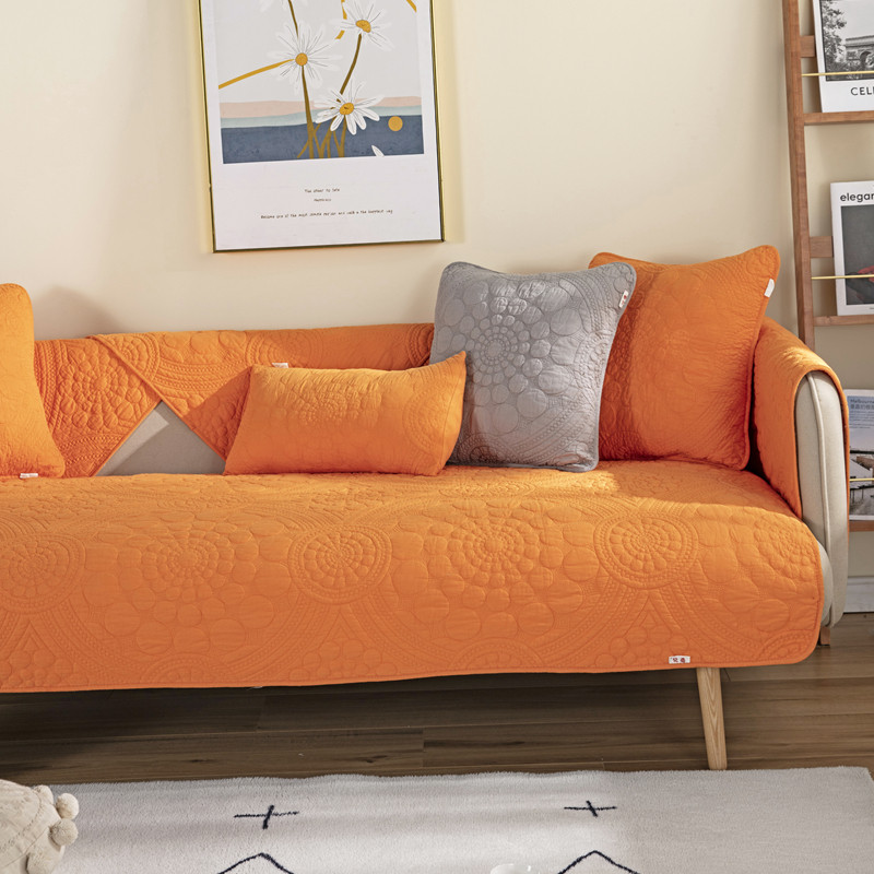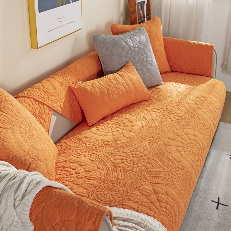 纯棉刺绣纯色沙发垫四季通用防滑简约现代布艺全棉坐垫巾套罩定制