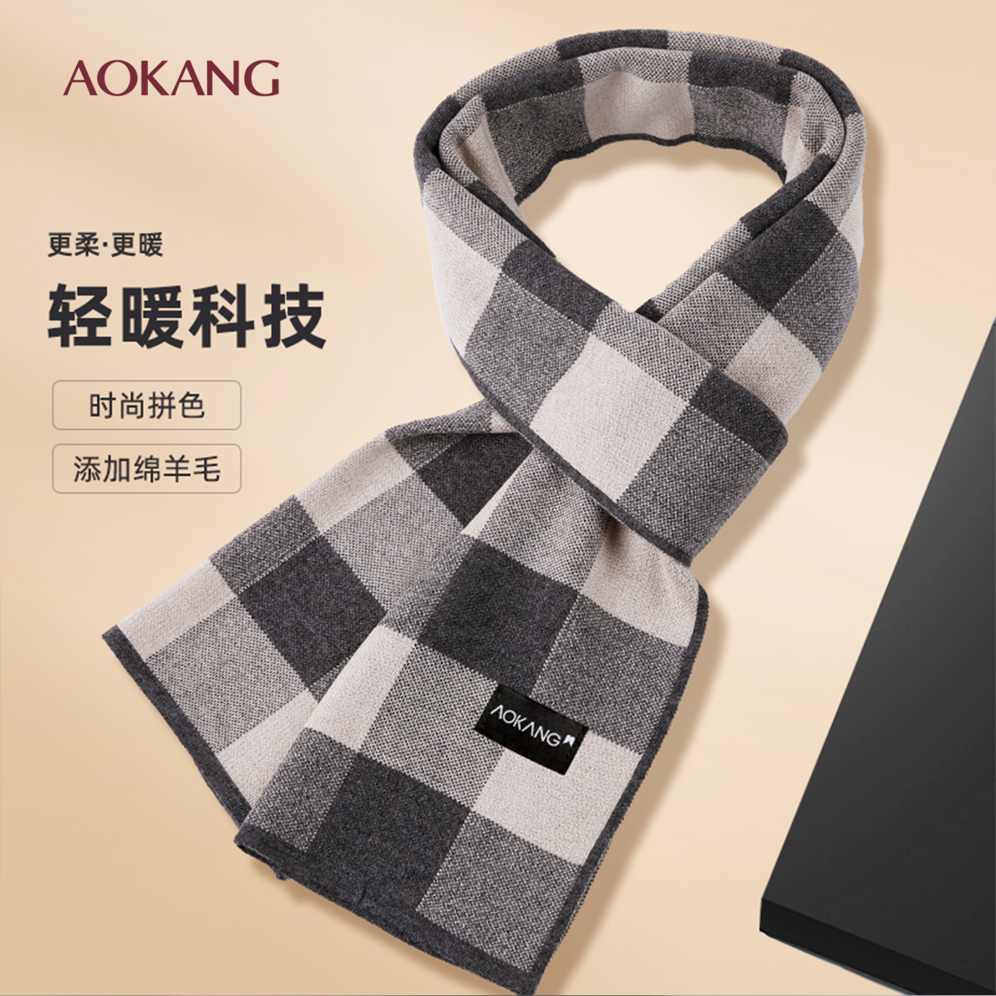 奥康围巾男士秋冬含羊毛保暖围脖2025新款送男友生日礼物围巾潮J