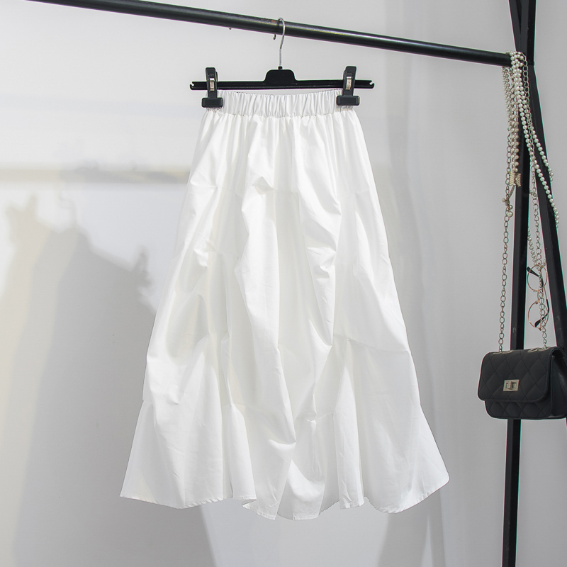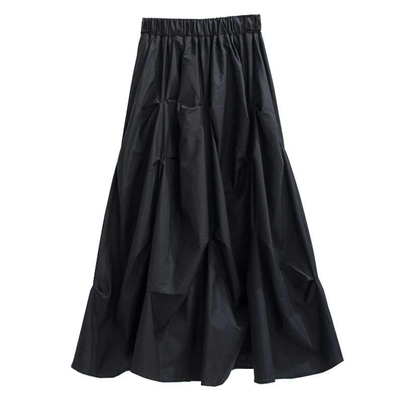 香港法式褶皱蓬蓬裙子女夏设计感小众高腰a字半身裙不规则中长裙