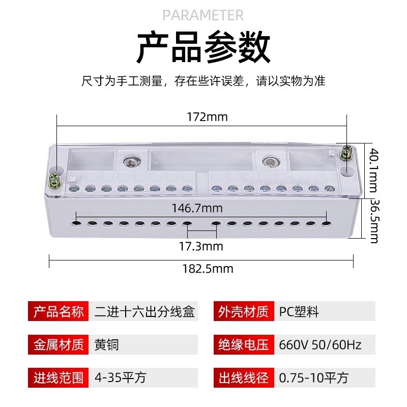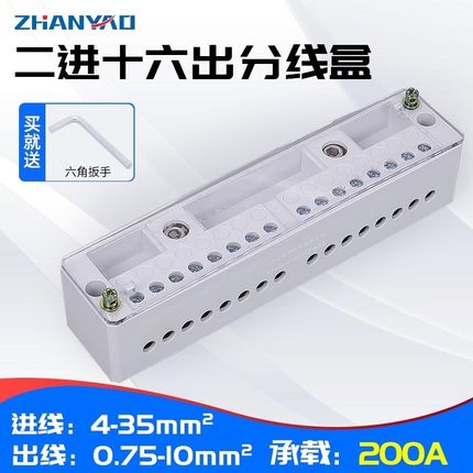 分线盒二进十六出接线端子排电线接线器家用明装220v零火并线器