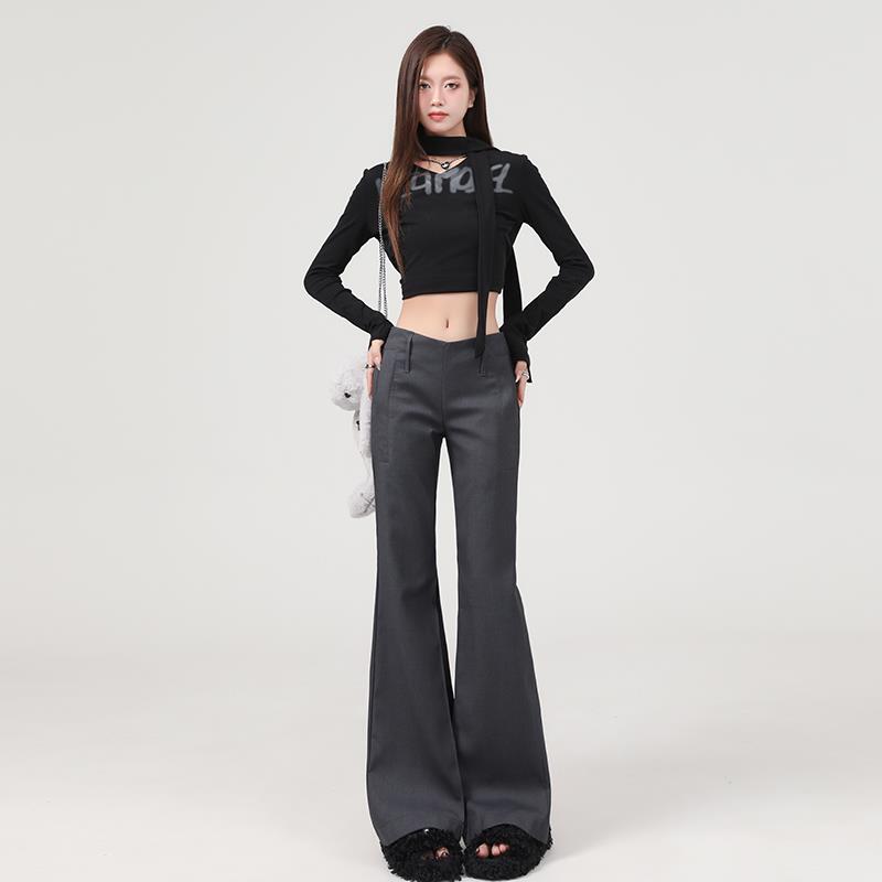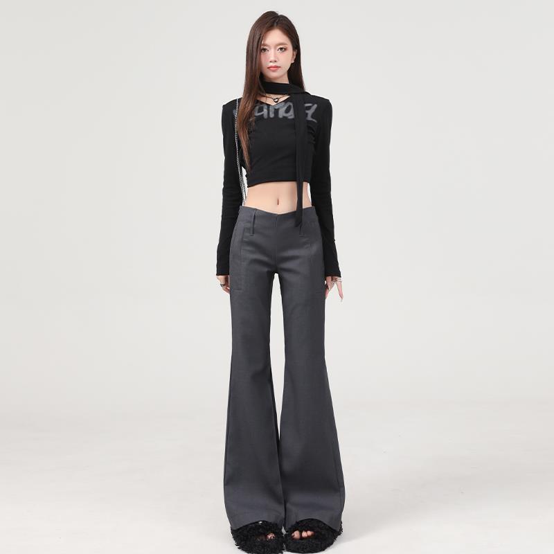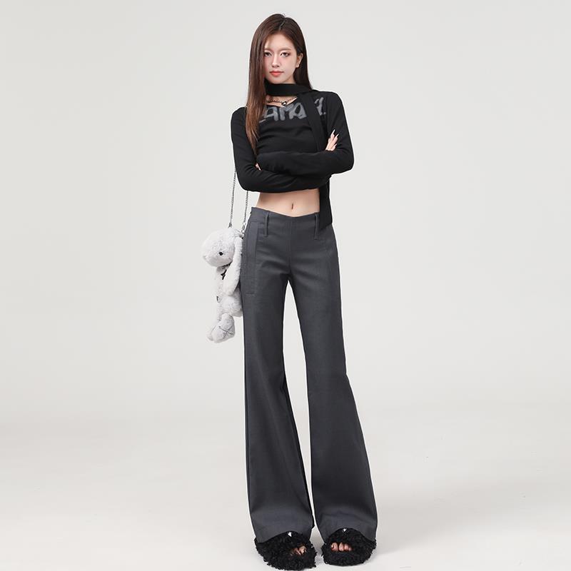 灰色辣妹低腰微喇休闲 裤女2025新款修身显瘦垂感西装裤子夏季薄