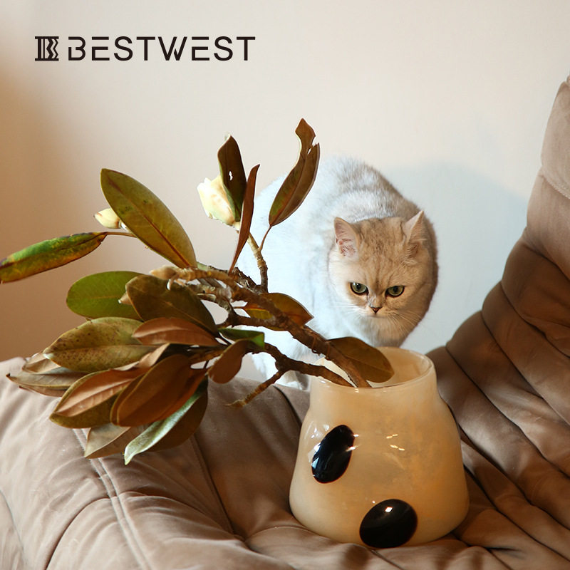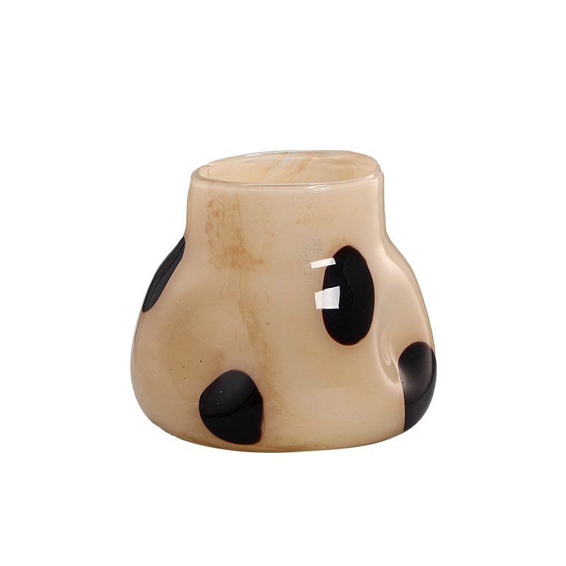 博西家居 珍珠奶茶波点敞口玻璃花瓶 ins家居软装饰品客厅小花器