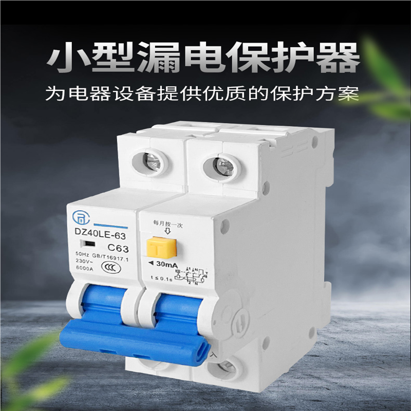 正电力DZ40空气开关带漏电保护器2P63A家用小型漏保占两位