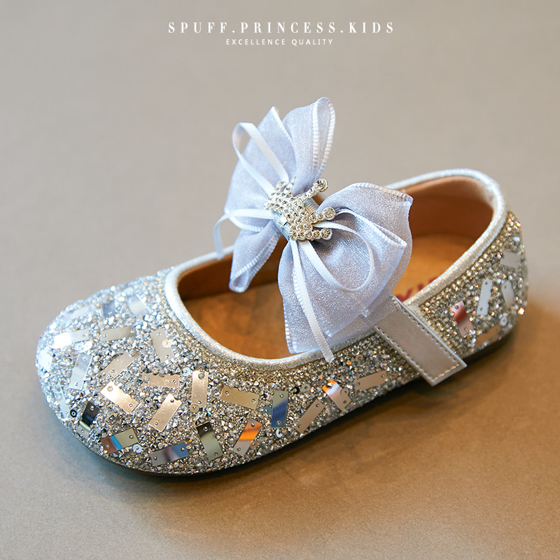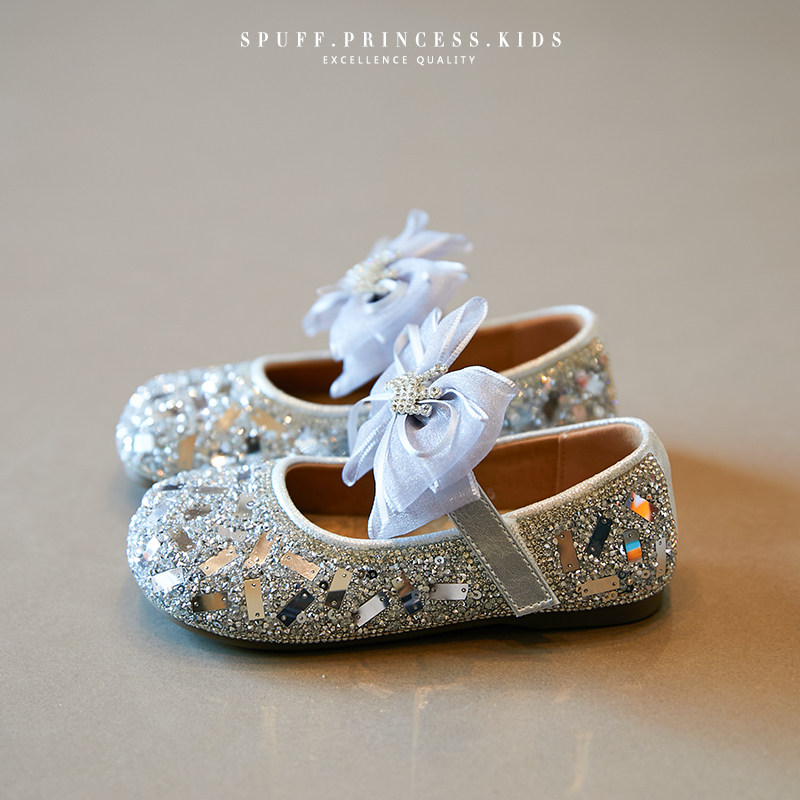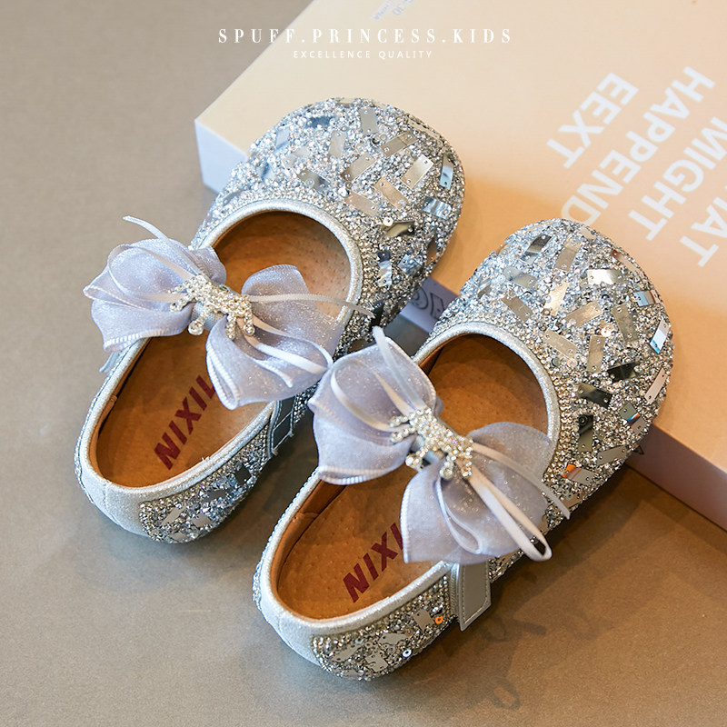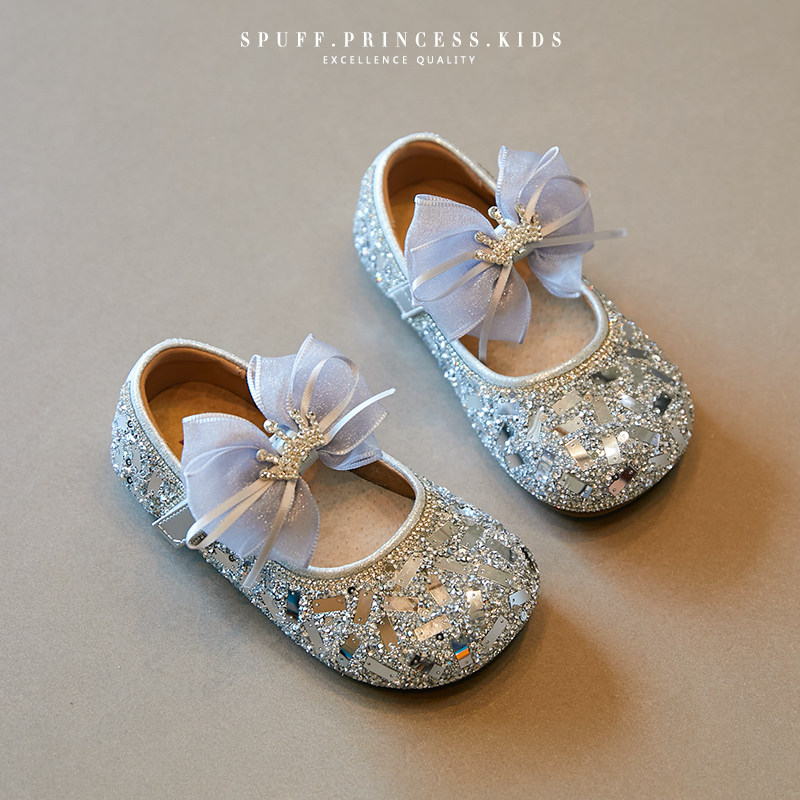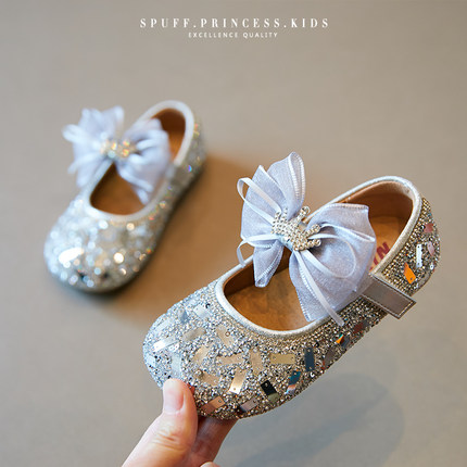 女童公主鞋2026春季新款软底亮片蝴蝶结儿童水晶鞋软底表演单鞋