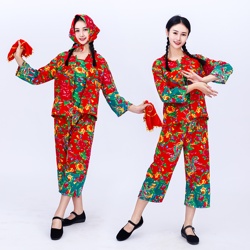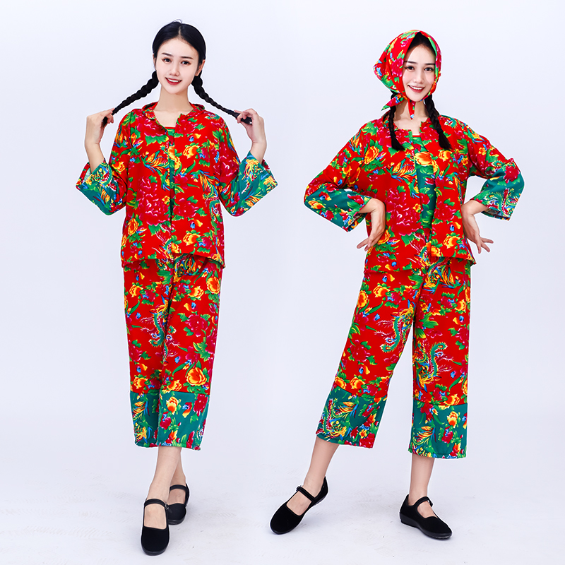 东北大花布村姑女二人转演出服搞笑姐妹广场舞蹈秧歌服农民套装
