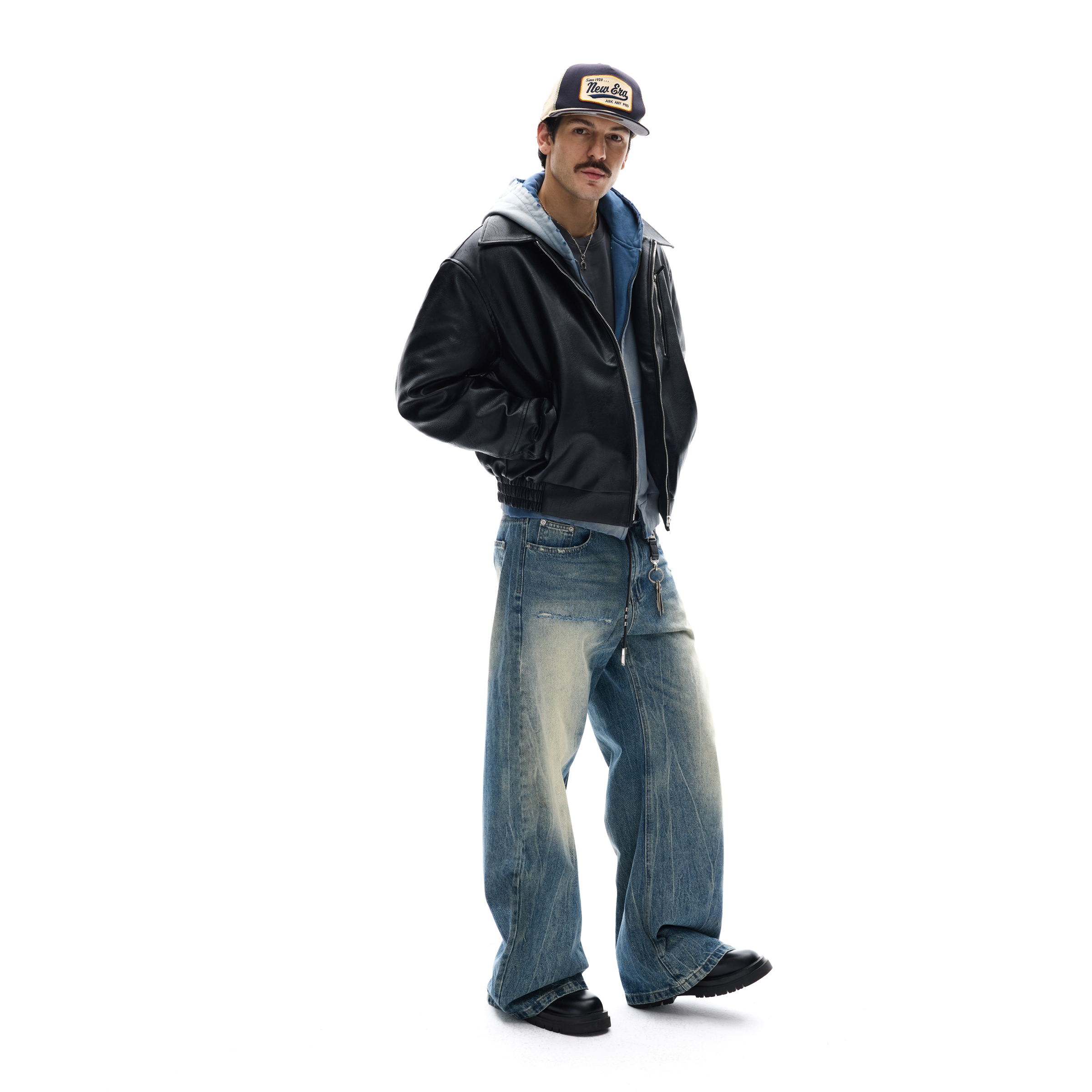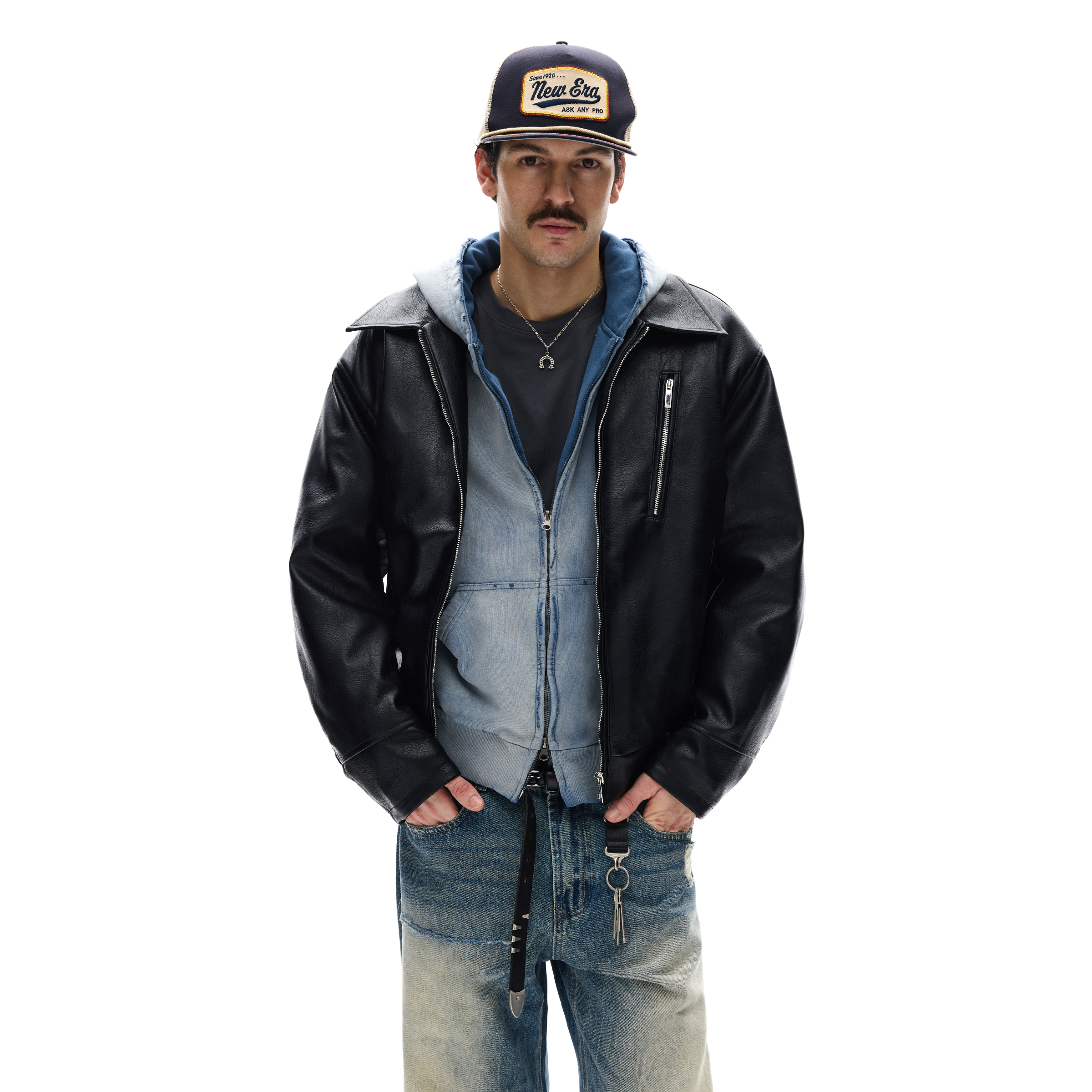 MADWITCH复古荔枝纹PU皮衣夹克