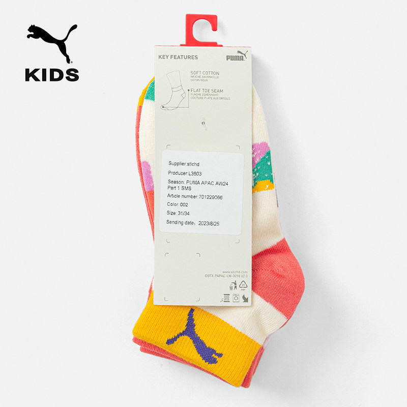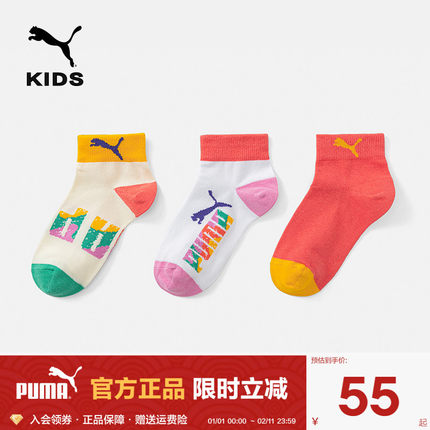 PUMA彪马童袜新款儿童运动跑步短袜休闲时尚校园学生袜子三对装