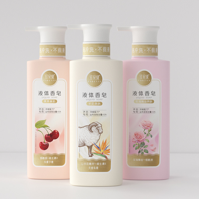 红贝缇液体香皂玫瑰车厘子羊奶精油沐浴露洗澡保湿留香不假滑330g