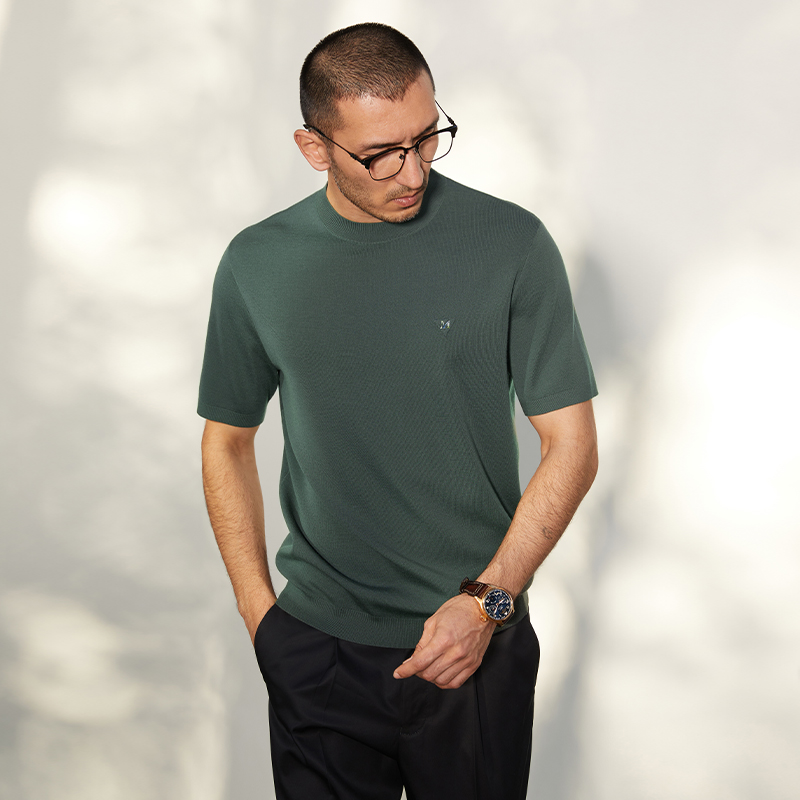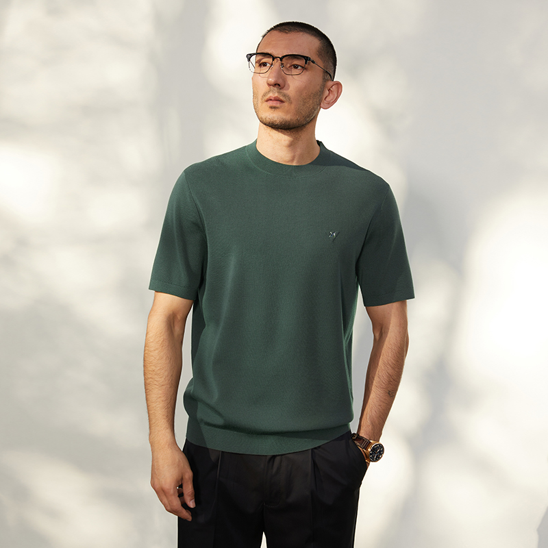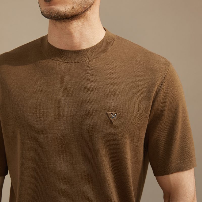 *目羡110支轻盈精纺羊毛18针四平M标短袖针织套衫男士 MZT05044