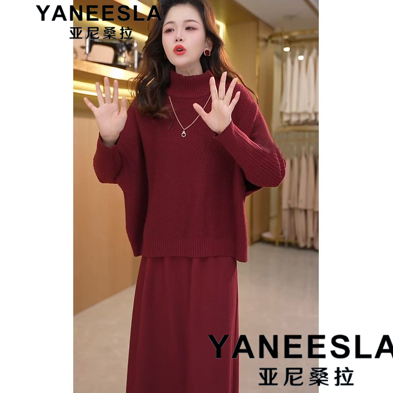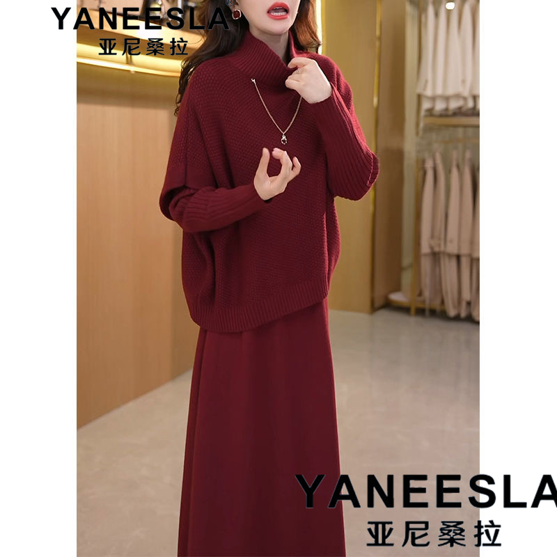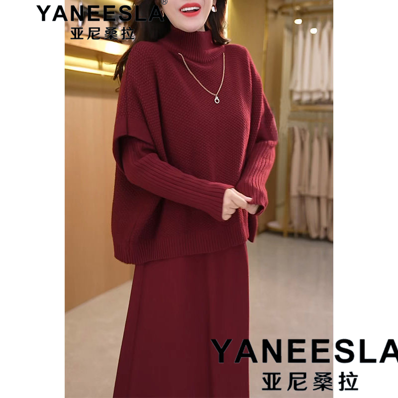 斗篷马甲两件套连衣裙女2024秋冬新款小个子中长款打底针织套装女