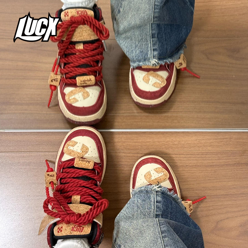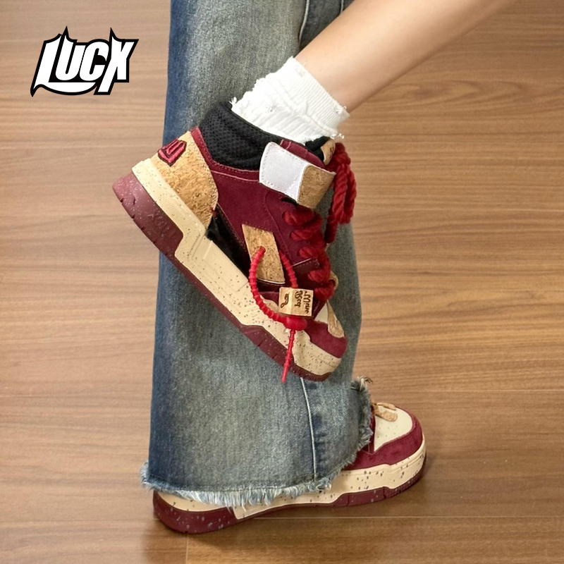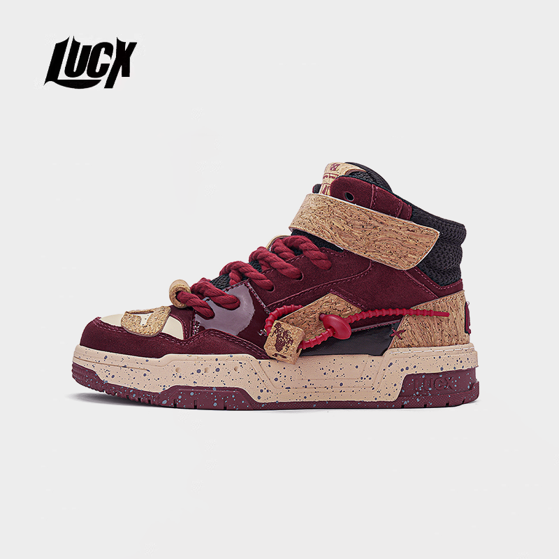 lucx鞋子国潮小众酒红高帮板鞋情侣男女运动鞋增高冬季新款面包鞋
