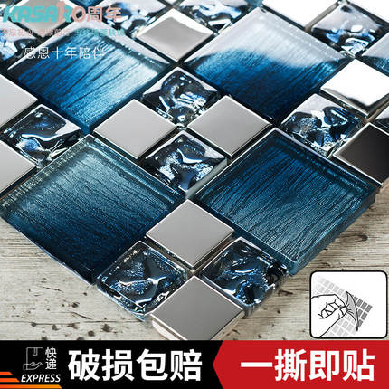 KASARO夹胶玻璃不锈钢马赛克瓷砖墙贴卫生间浴室电视背景墙非自粘