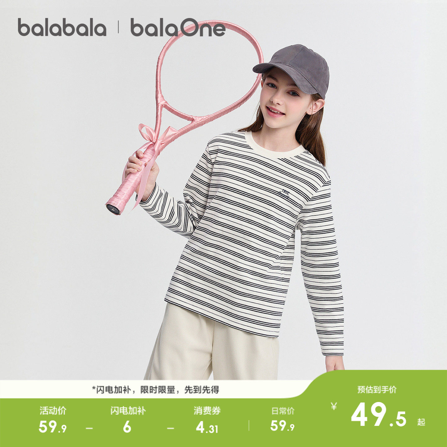 巴拉巴拉童装儿童长袖t恤男童女童衣服新款秋冬装条纹打底衫上衣