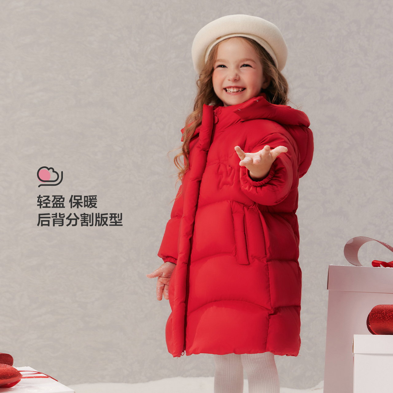 笛莎童装女童羽绒服2025秋冬装女宝宝小童儿童加厚中长款红色外套