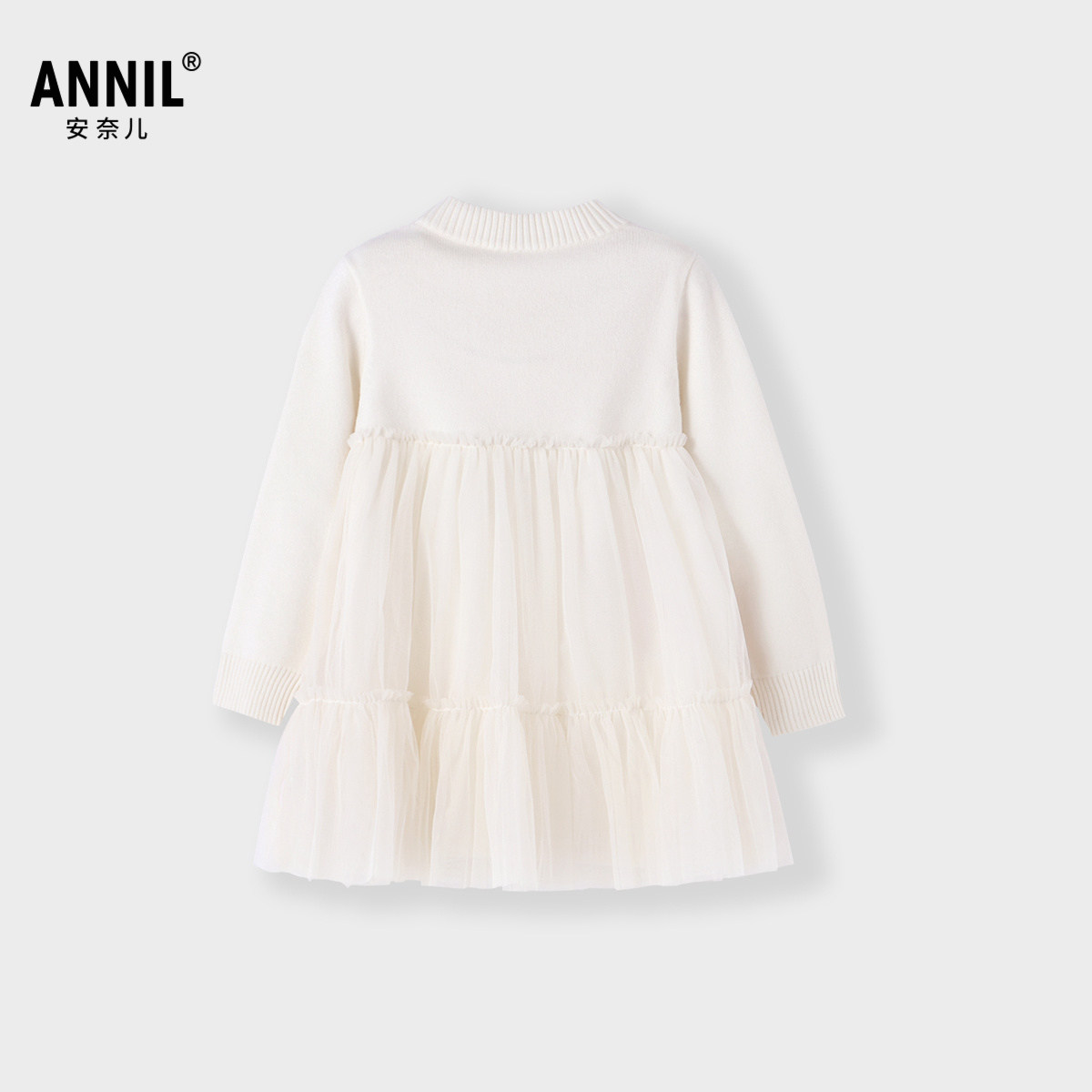 【商场同款】安奈儿童装女童针织长袖连衣裙冬毛衣拼纱绣花裙