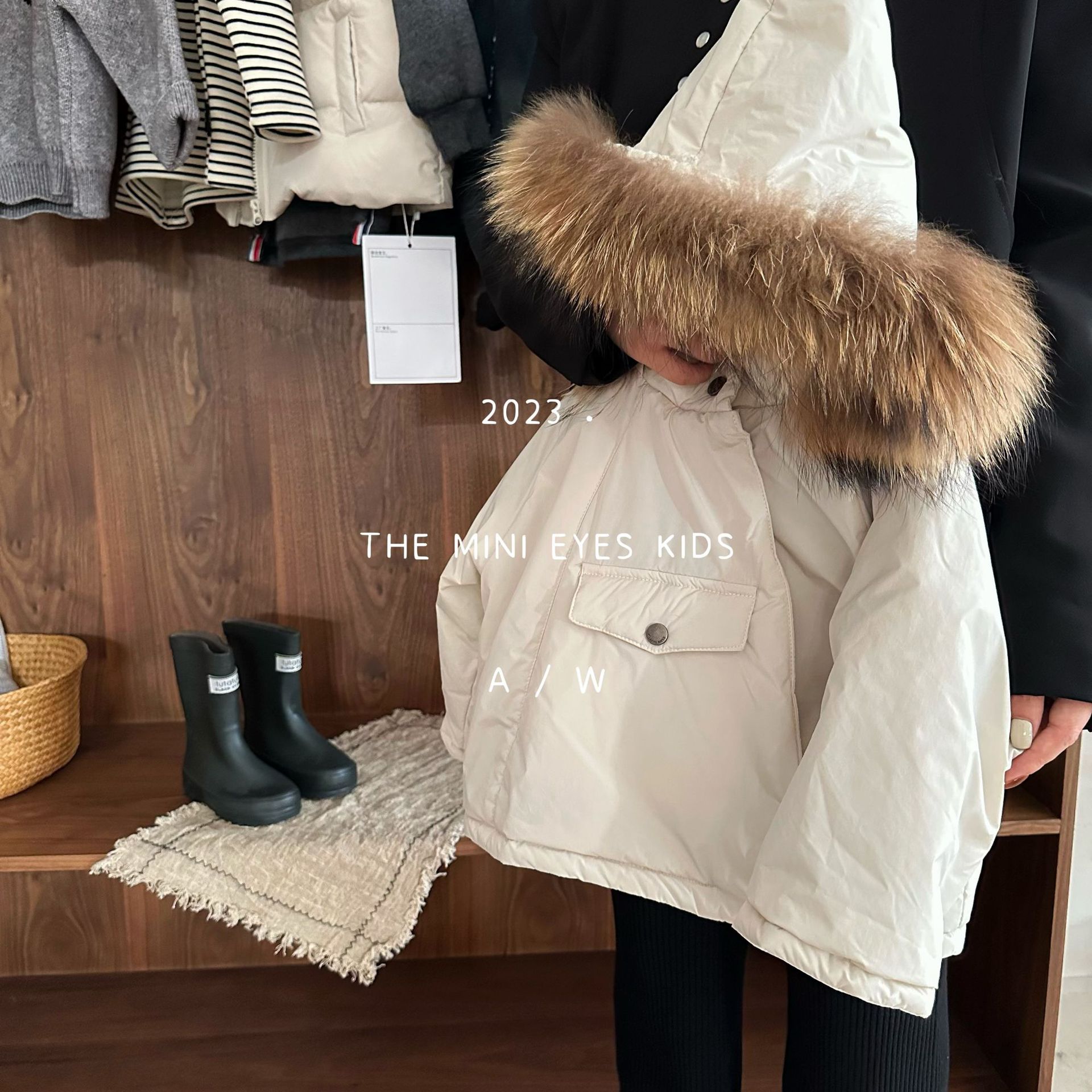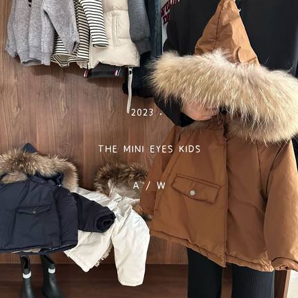 儿童上衣棉衣24冬季新品男女童大毛领连帽棉衣宝宝个性棉服外套潮