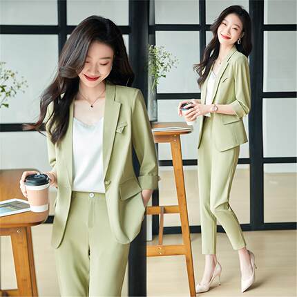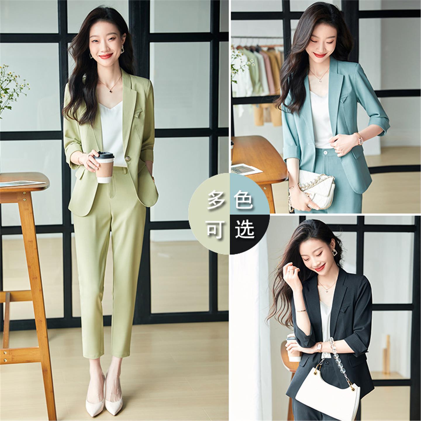 西装外套女夏季薄款七分小个子休闲时尚气质工作服职业西服套装夏
