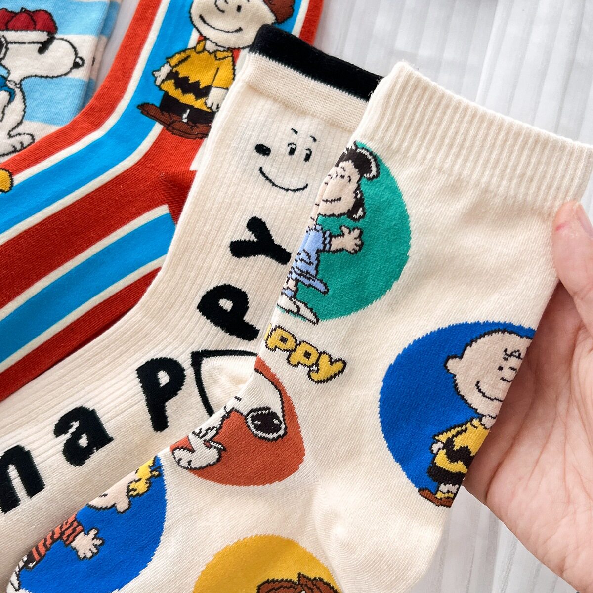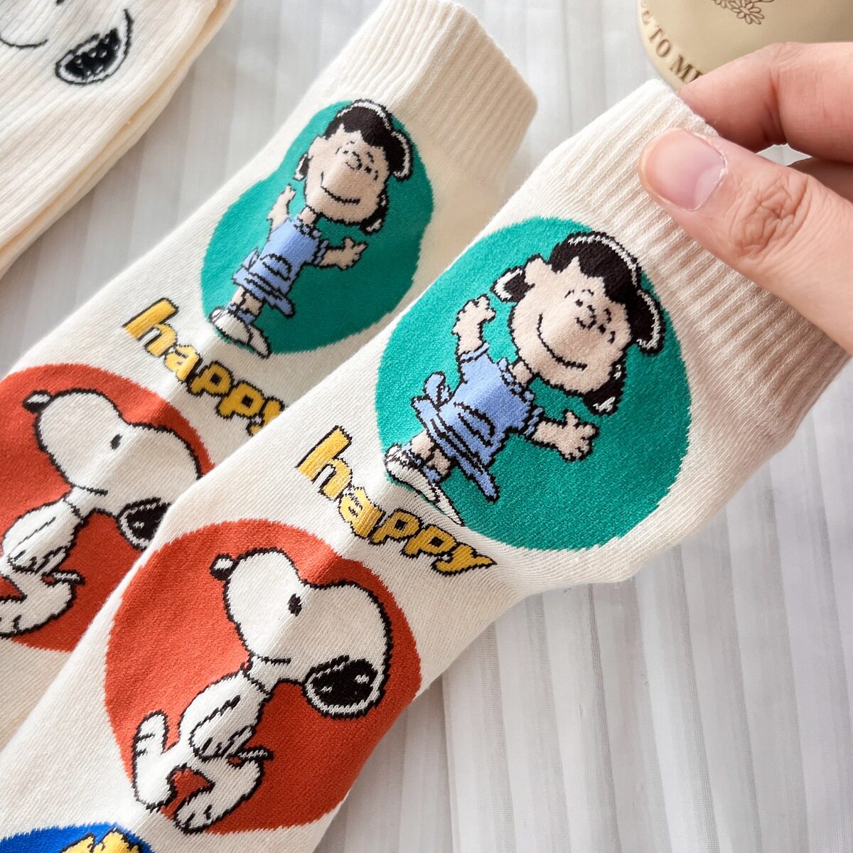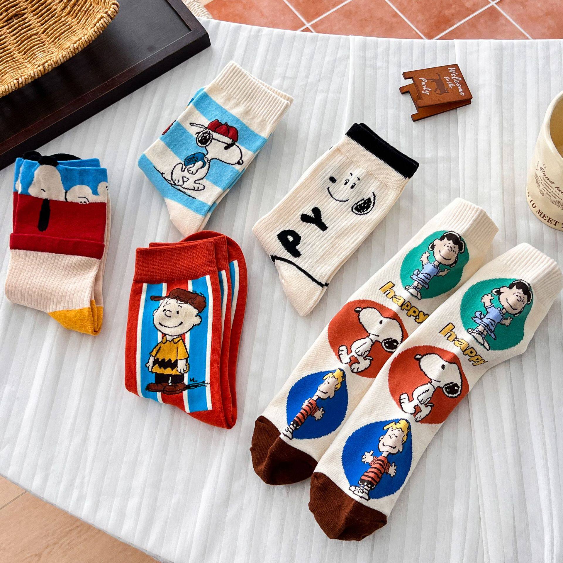 美漫风史努比个性袜子女中筒秋冬卡通可爱创意外穿小众精梳棉韩版