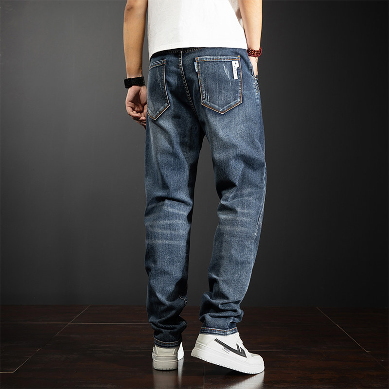 春秋牛仔裤宽松哈伦小脚显瘦胖子