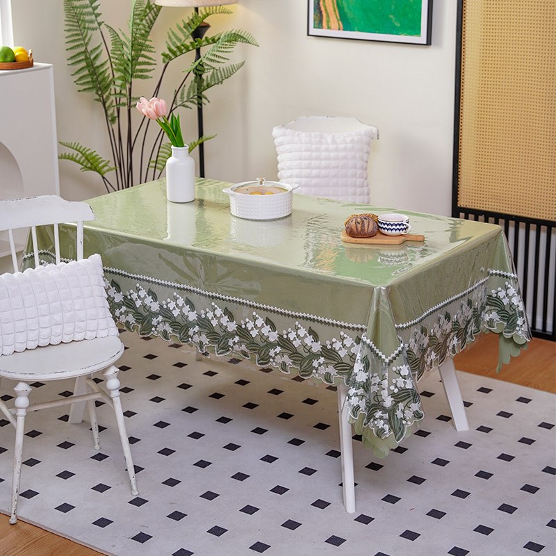 蕾丝餐桌布pvc软玻璃防水防油茶几台布高级感刺绣透明桌垫水晶板