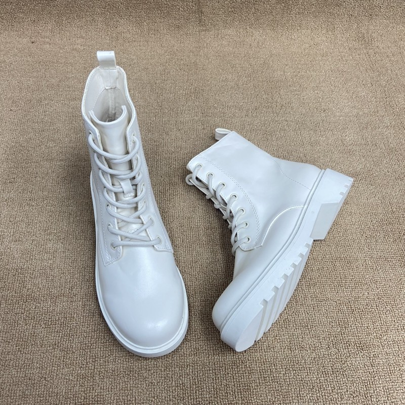 原单H家休闲系带马丁靴春季圆头平底短靴小个子骑士靴防滑橡胶底