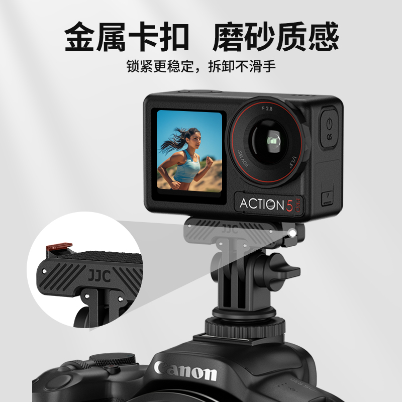 JJC 适用大疆action pro5配件冷靴底座云台磁吸快拆底座Osmo 360 action4/3转接微单反相机热靴支架