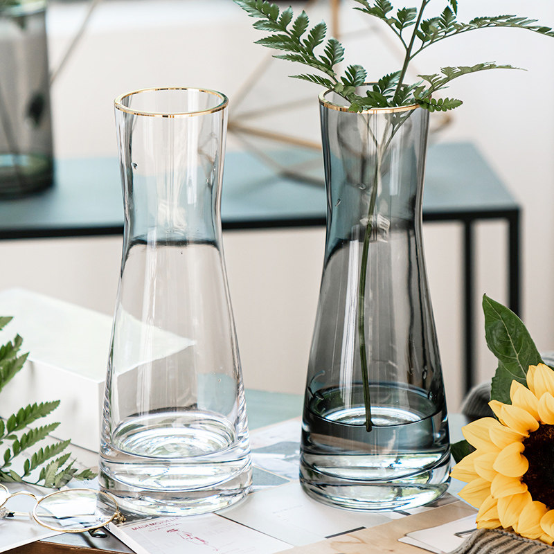 高级感创意简约玻璃花瓶透明水养植物鲜花玫瑰百合花干花插花摆件