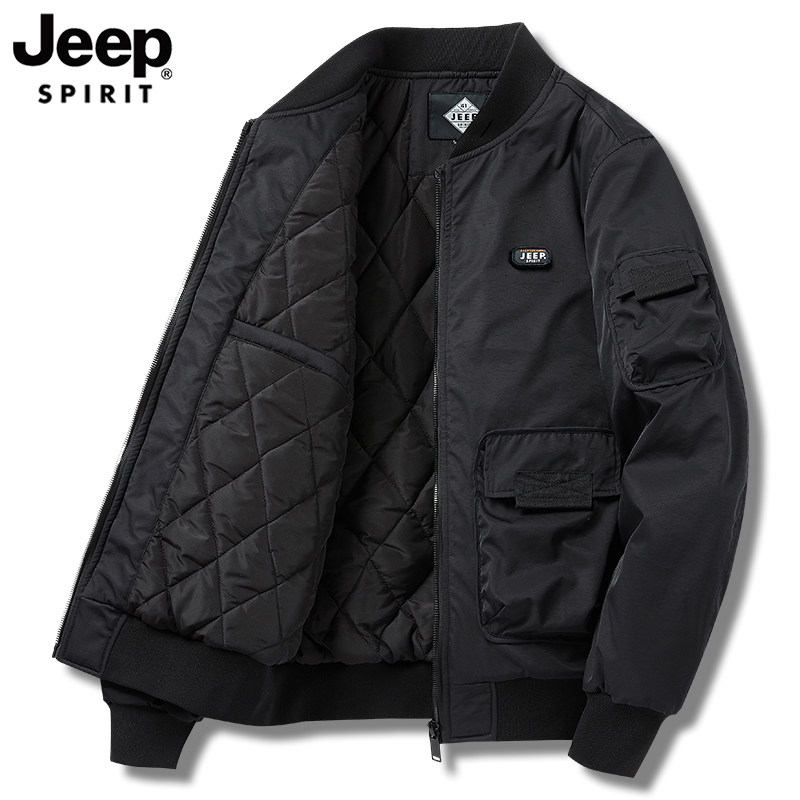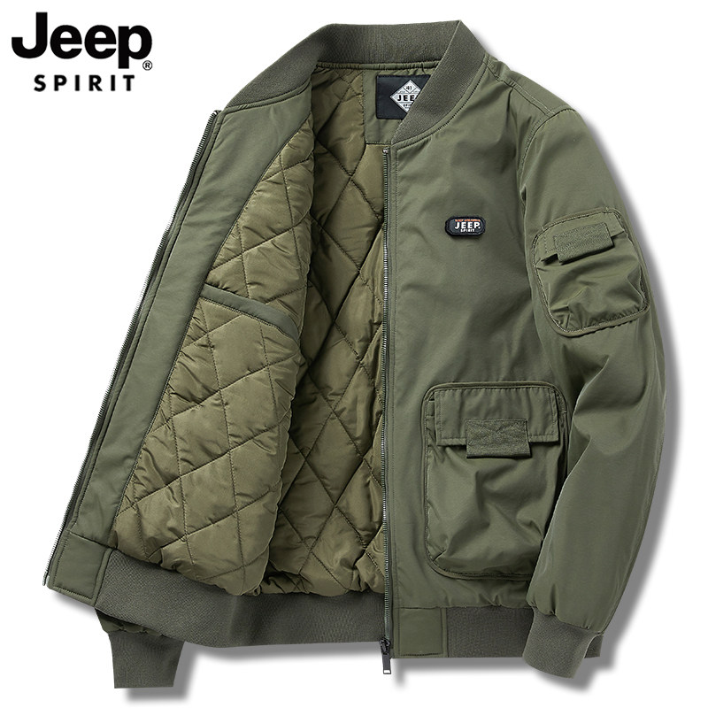 吉普JEEP工装外套男士春秋季短款棒球服飞行员棉服男冬季加厚棉衣