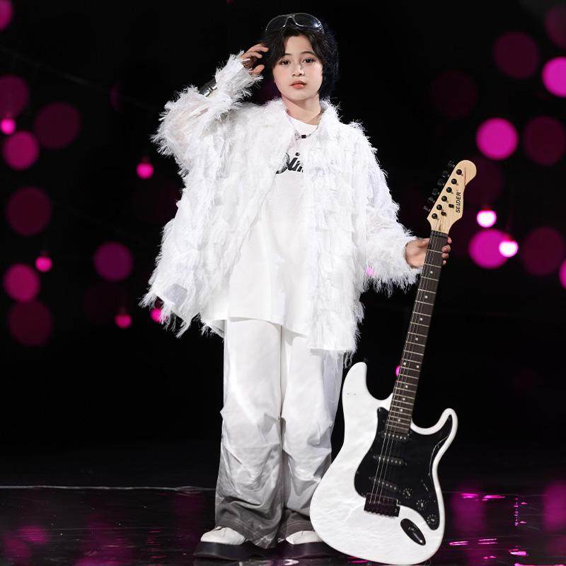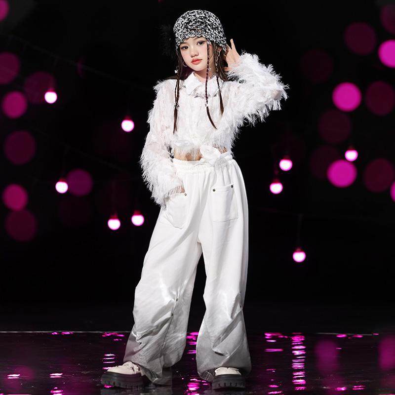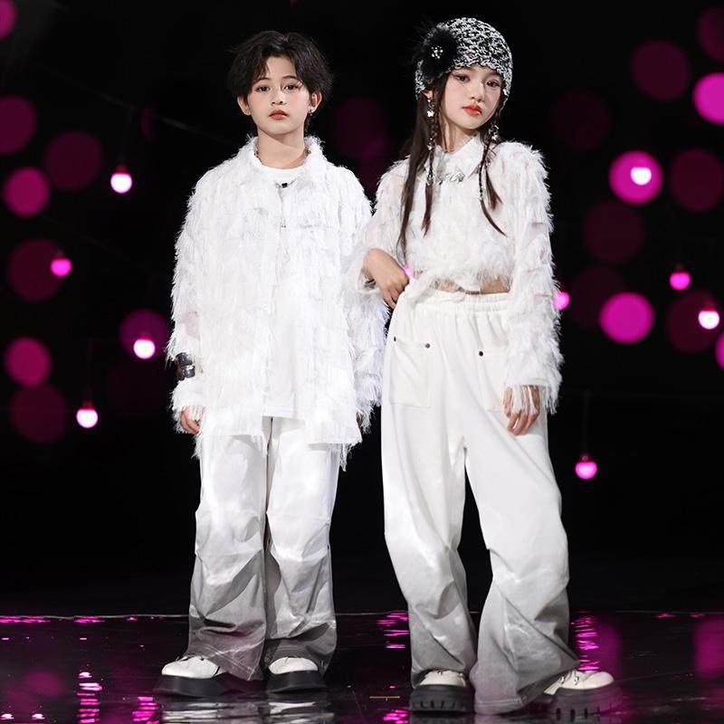 街舞儿童潮服男童羽毛衬衫舞台架子鼓服女童jazz爵士舞走秀演出服
