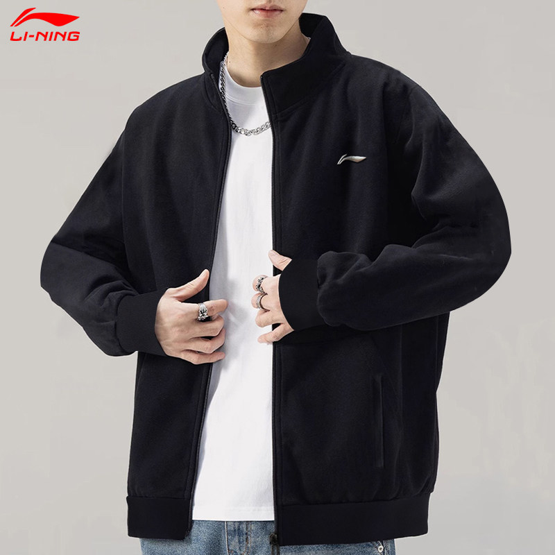 李宁立领外套男卫衣男士2026春季新款黑色宽松休闲开衫运动服上衣