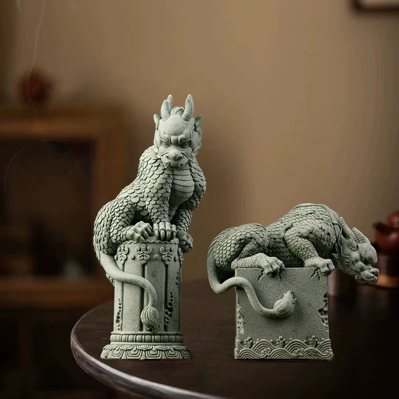 青砂石盘龙花园流水装饰摆件假山鱼缸茶桌桌面高端大气工艺品造景