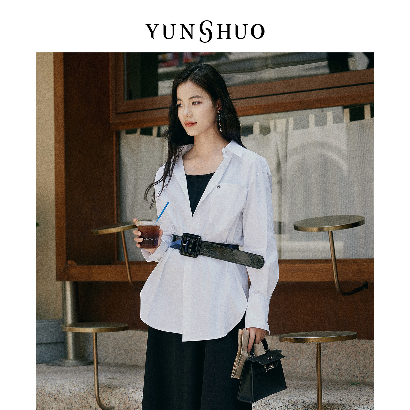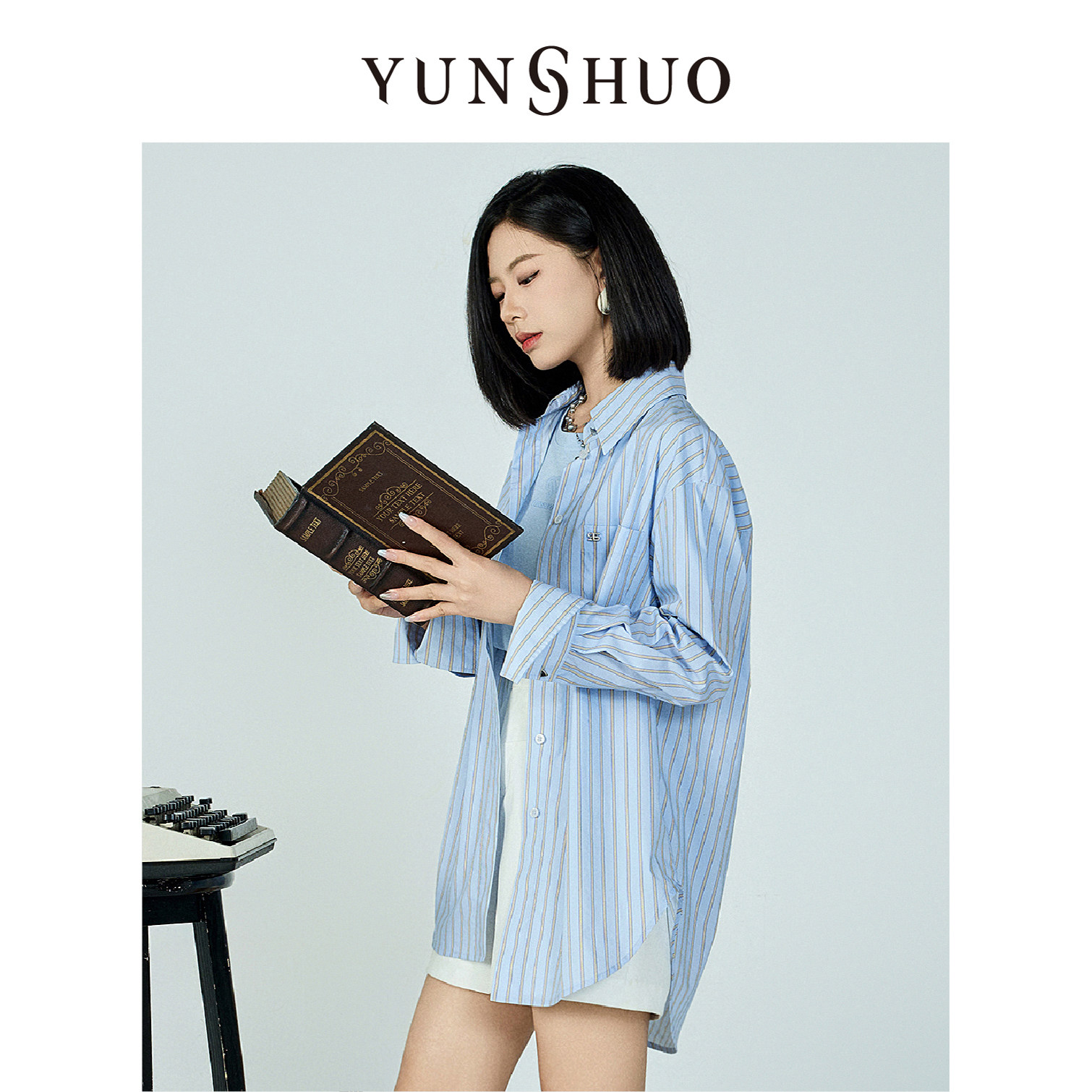 允硕许妍同款时尚宽松白衬衫百搭中长款休闲条纹棉上衣339746