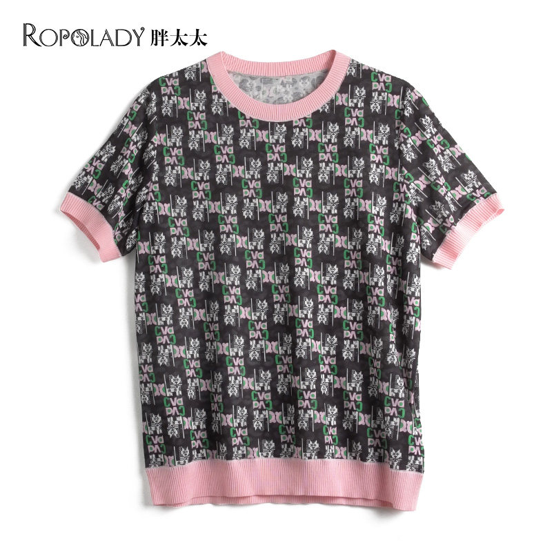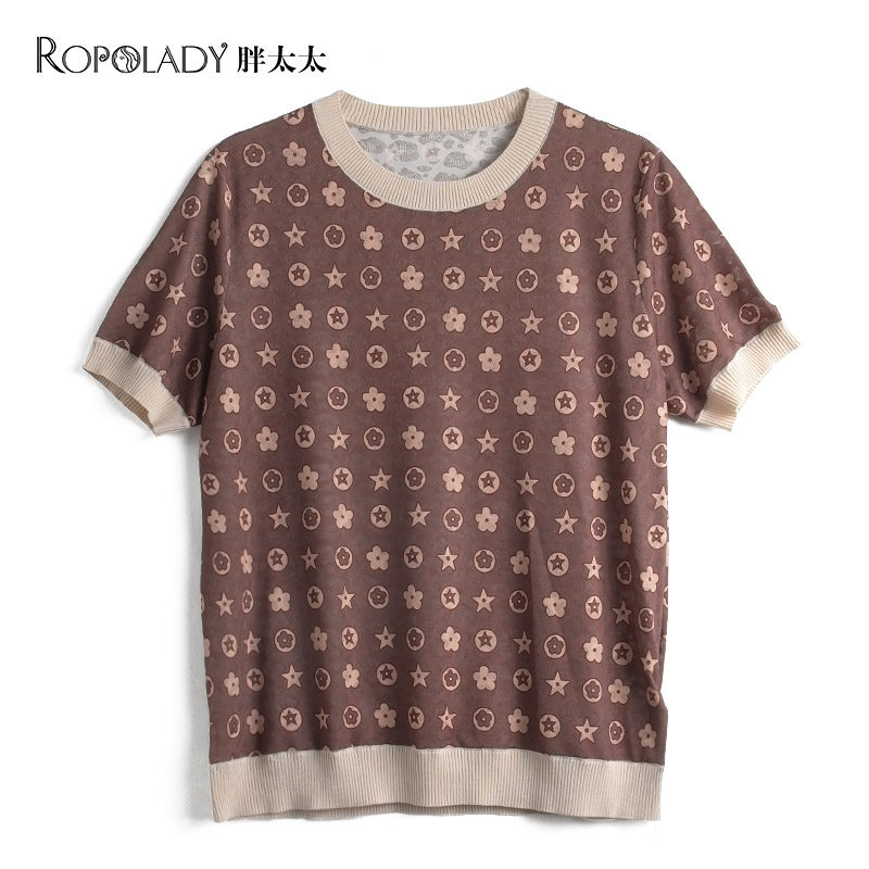 胖太太大码女装母亲妈妈装显瘦夏季通勤款针织老人T恤423220410