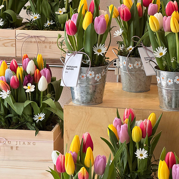 复古铁皮手提花桶郁金香花束包装盒鲜花礼盒空盒高级感花艺抱抱桶