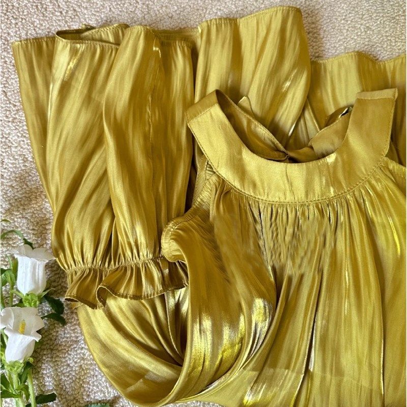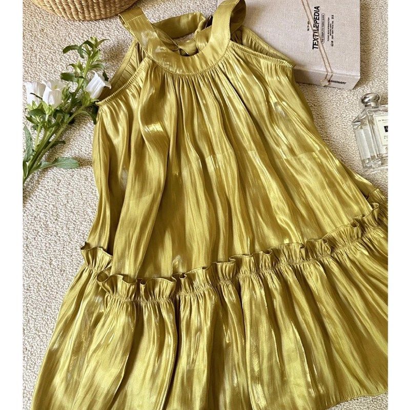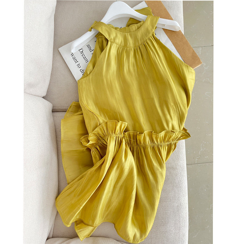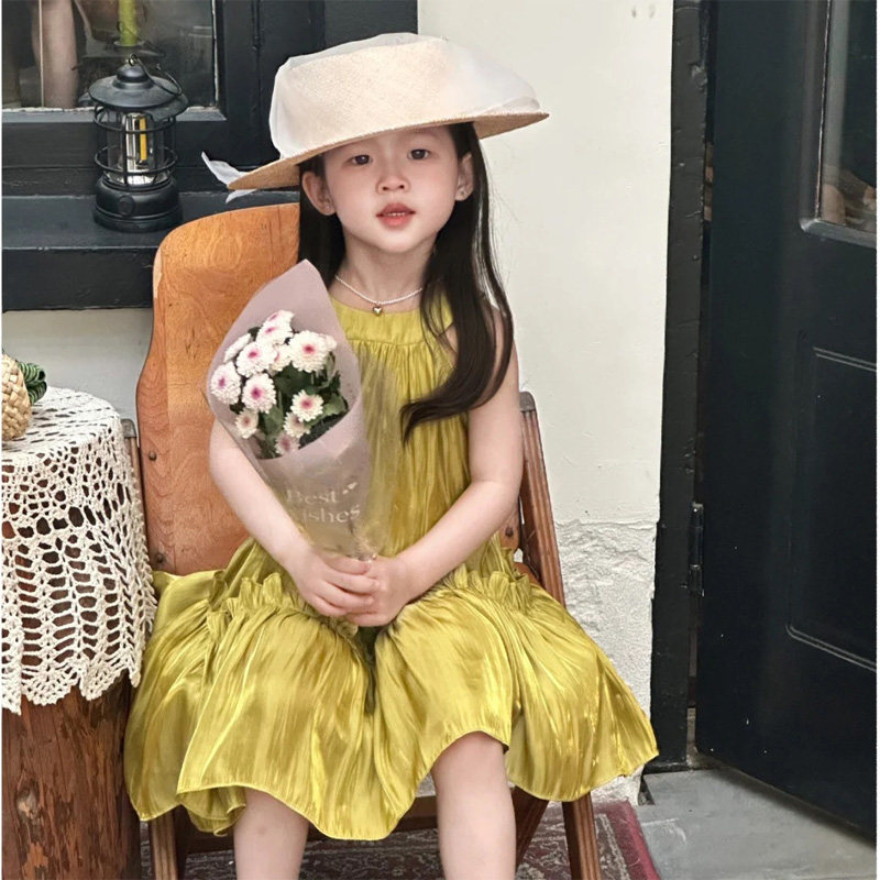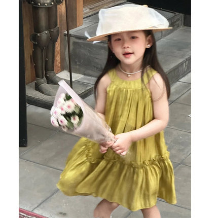 女童挂脖连衣裙夏季小女孩琉璃金色背心裙子度假沙滩裙洋气气质