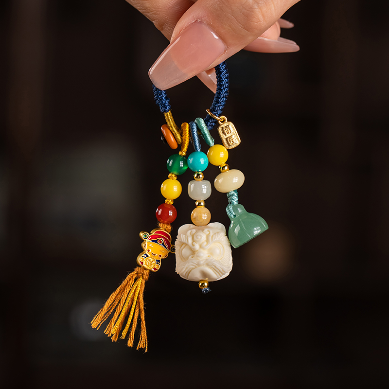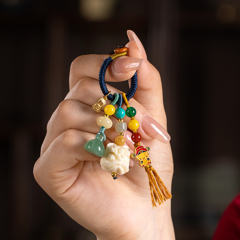 栩匠【狮来运转】醒狮汽车钥匙扣挂件男小财神创意礼品女个性创意