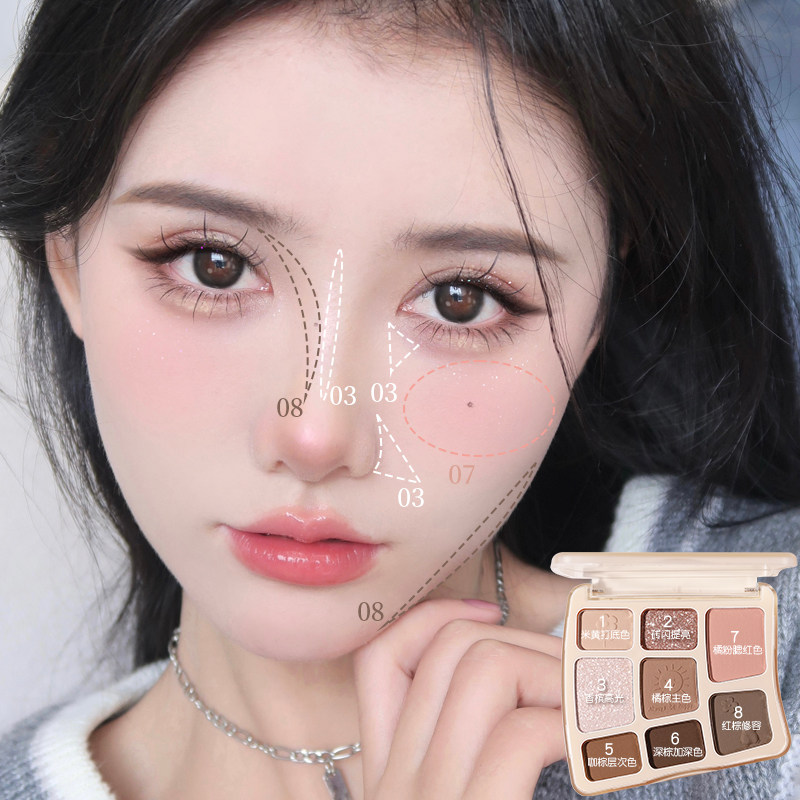 2026新款2026八色眼影盘哑光大地色腮红提亮高光修容一体综合盘女