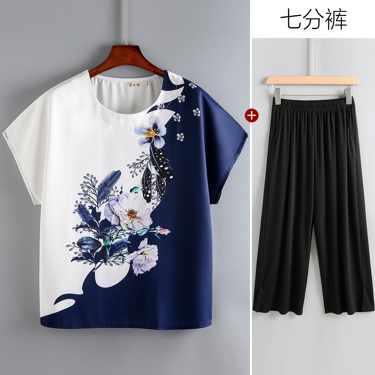 冰丝短袖t恤女2025新款宽松雪纺小衫中年妈妈夏装大码中老年上衣