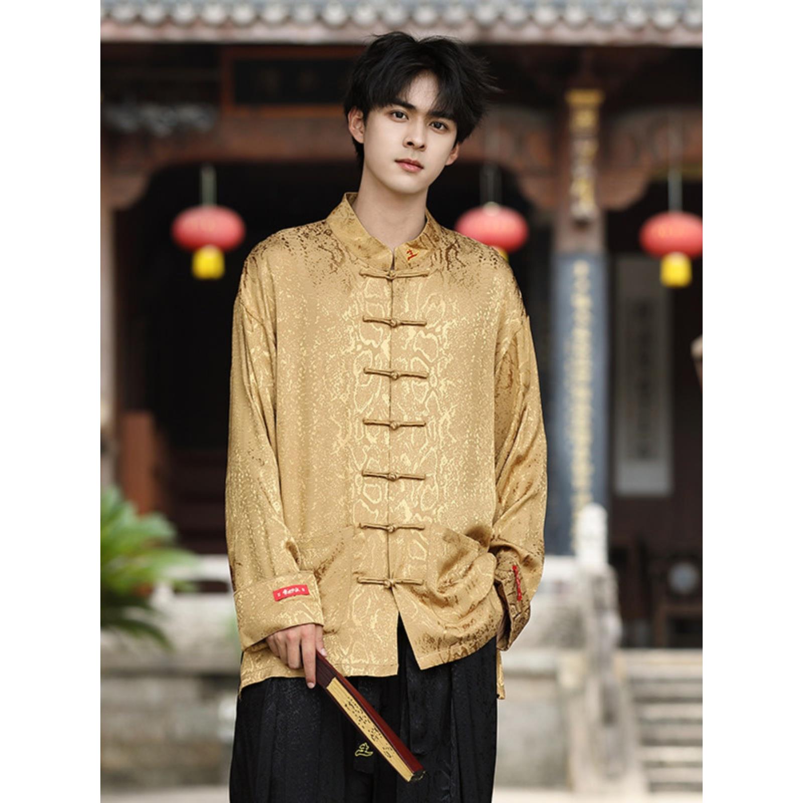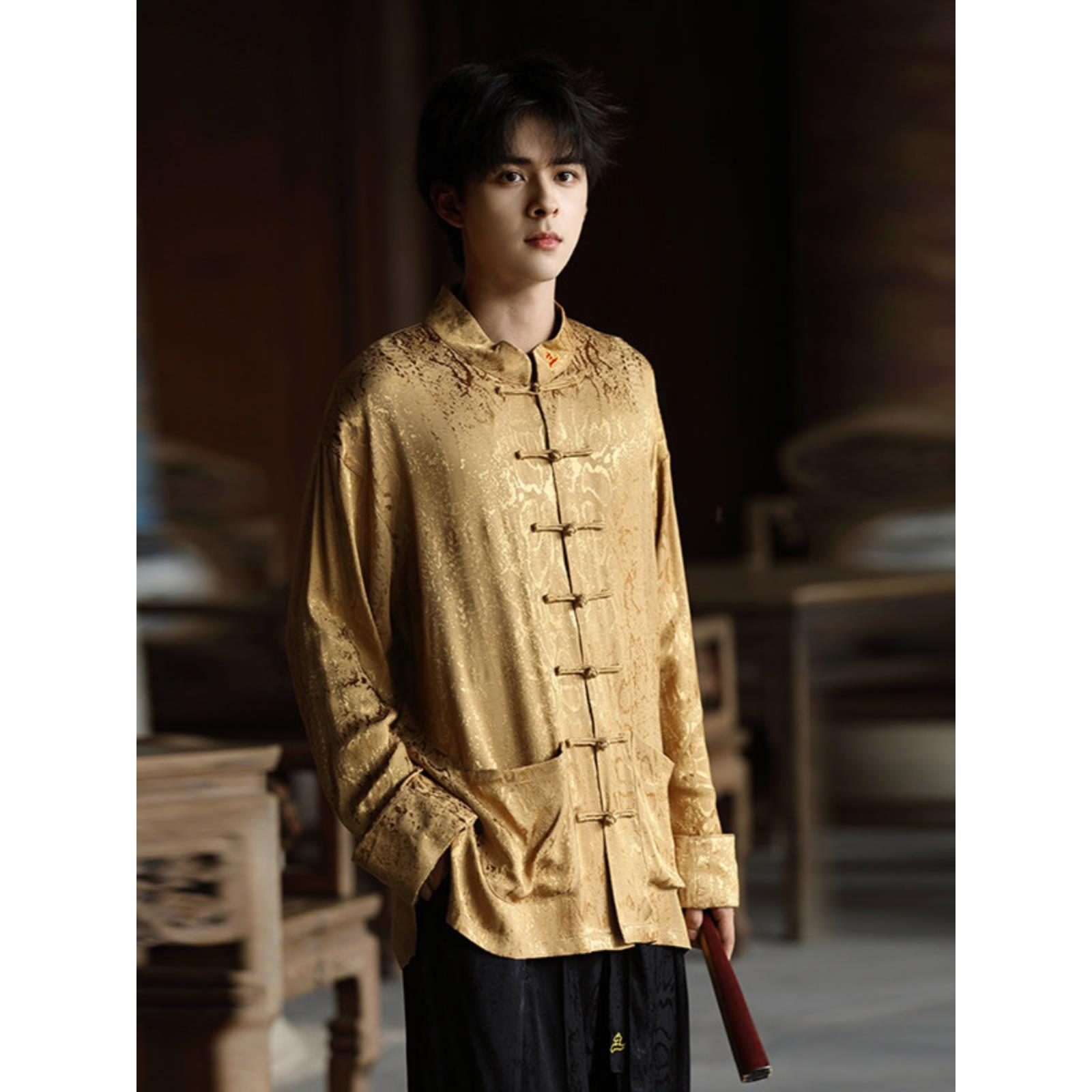 秋冬新品盘扣衬衣中国风(金财神)国潮冰丝提花改良唐装外套男女
