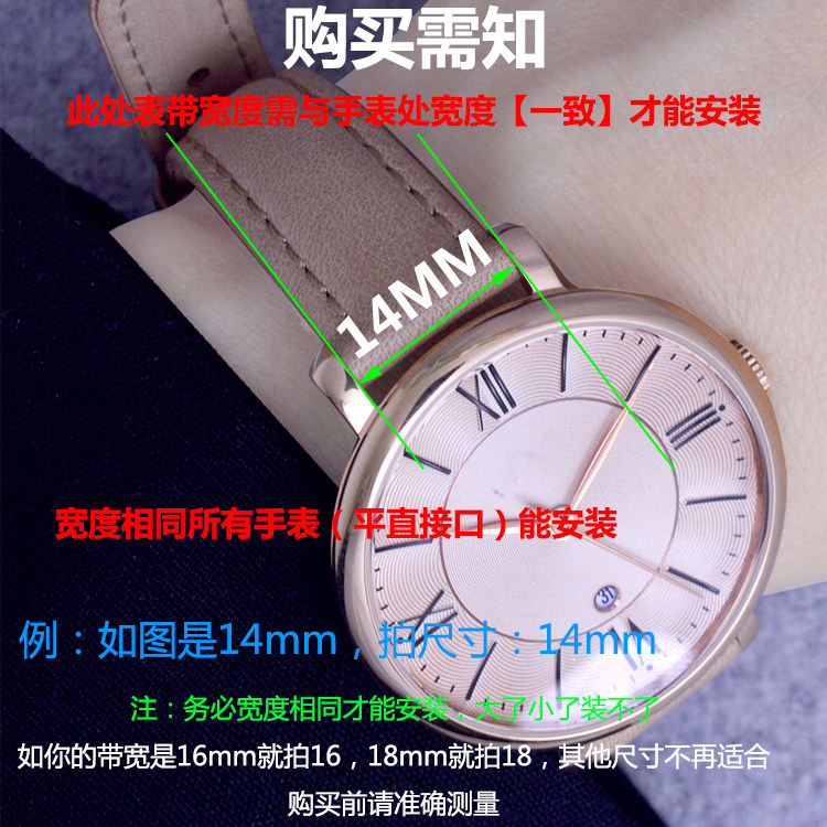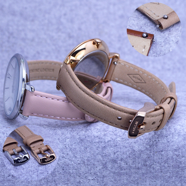 手表表带沙色14MM女款真皮蓝16mm适配FOSSIL牛皮ES4007ES4021软18