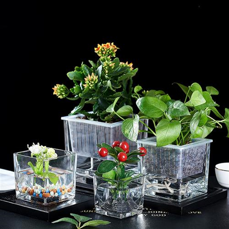 正方形玻璃花瓶透明绿萝水养花器简约水培花盆客厅小鱼缸装饰摆件