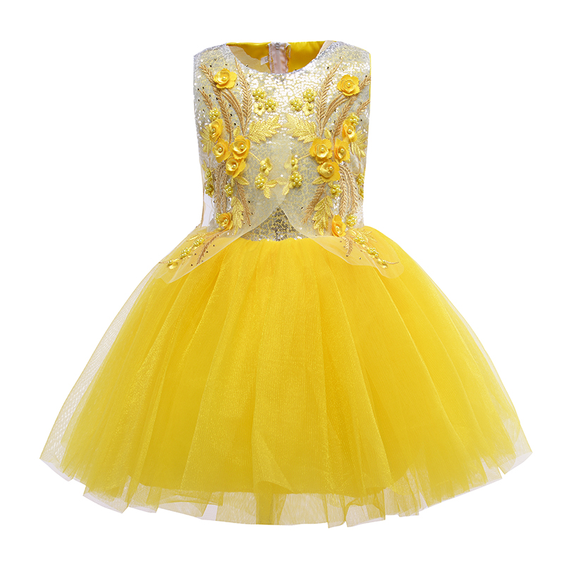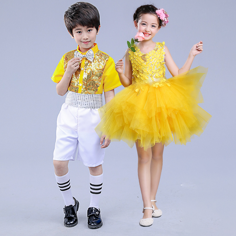 儿童演出服六一女童合唱纱裙幼儿园小学生舞蹈蓬蓬裙亮片纱裙黄色