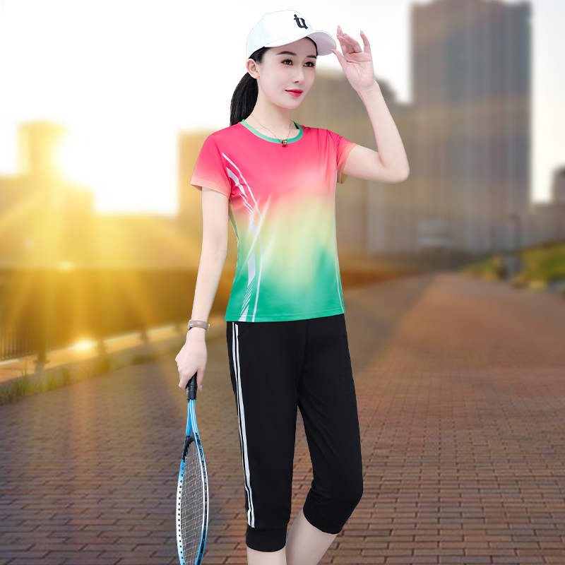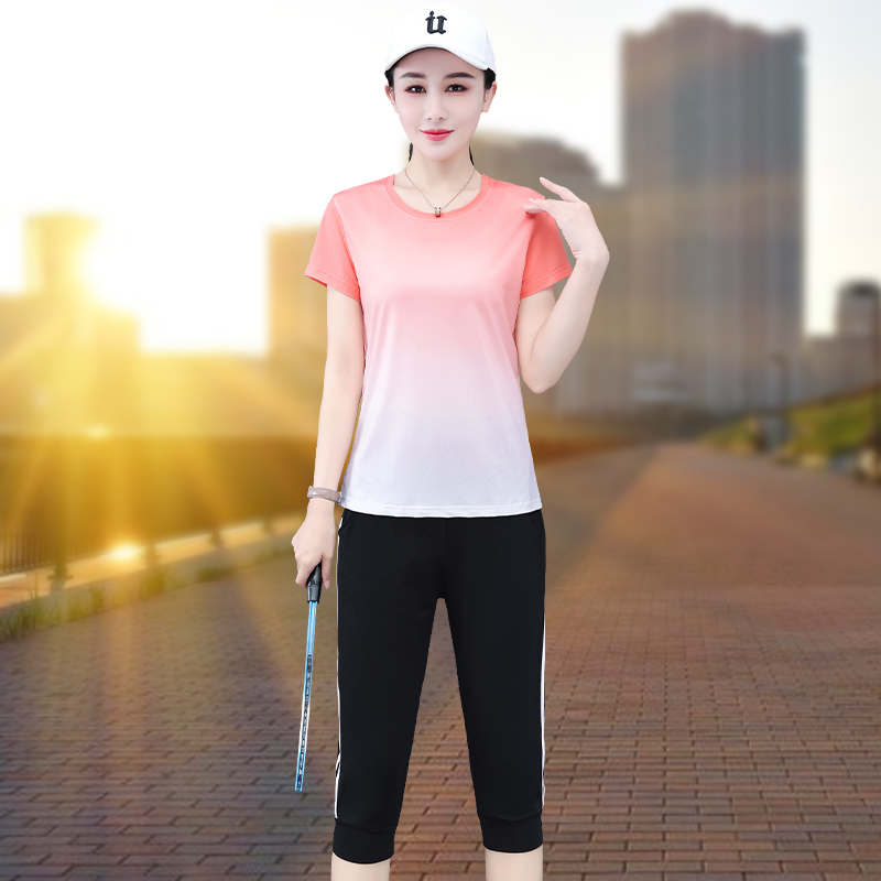 冰丝速干短袖短裤七分裤运动套装女士2025夏季洋气休闲跑步两件套