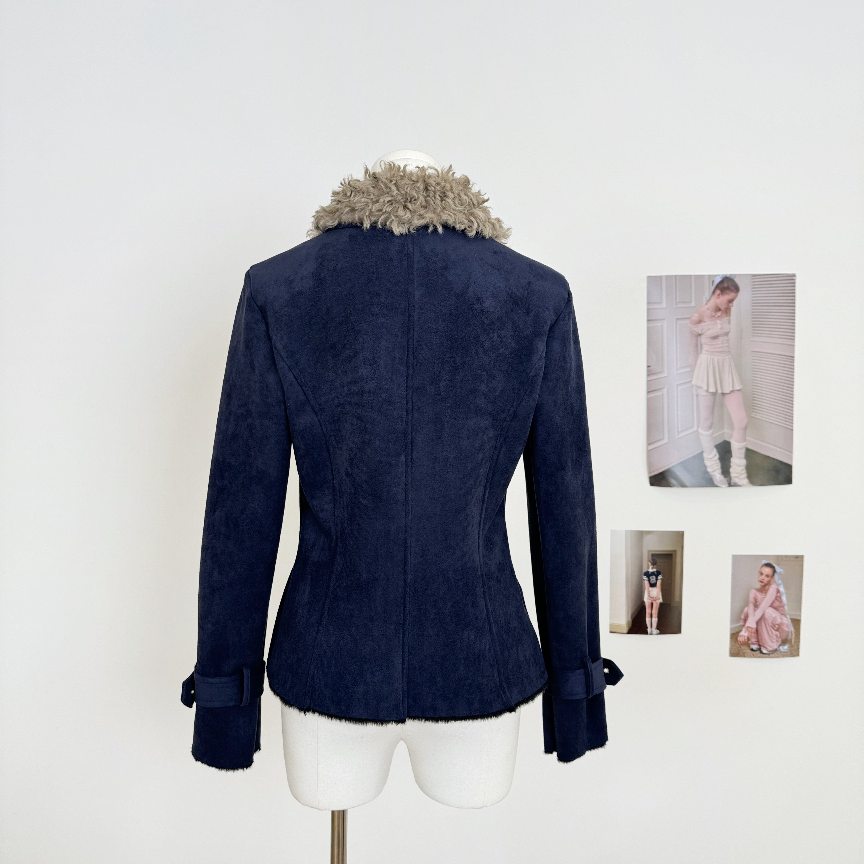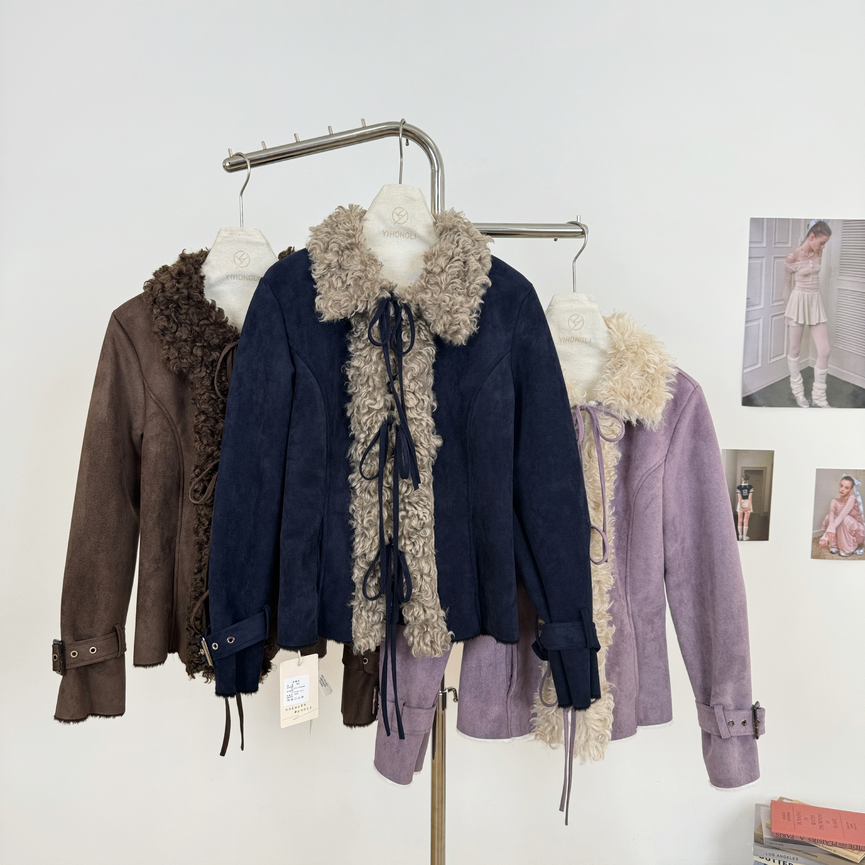 M.Y原创设计 秋冬款辣妹气质高级感修身短外套复古毛领夹克上衣