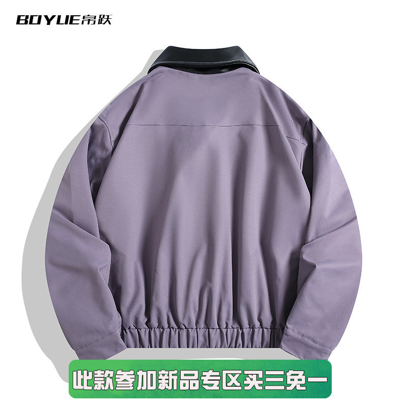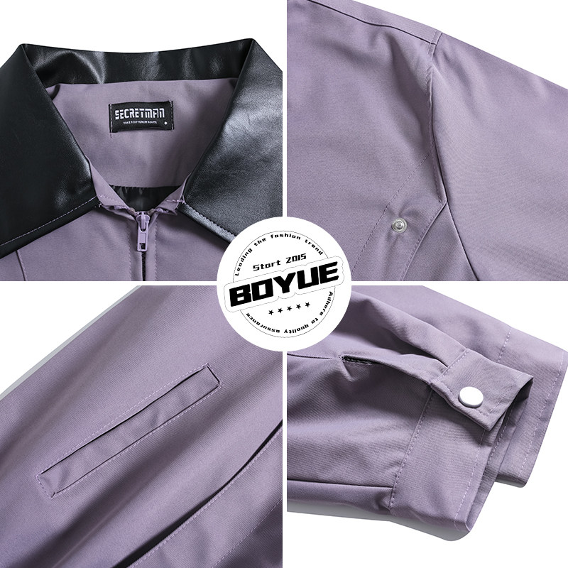 BOYUE帛跃春秋撞色皮领底特律工装夹克户外古着百搭飞行员外套男