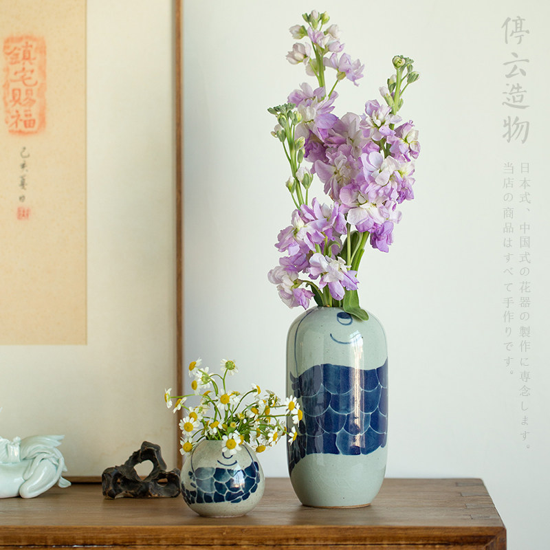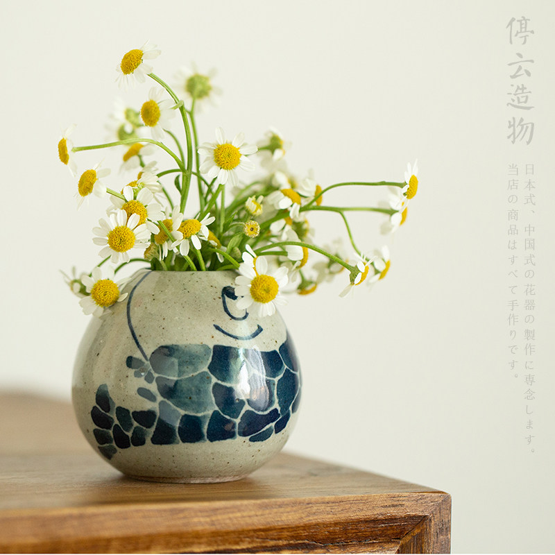 手绘青花瓷复古中式迷你粗陶花瓶