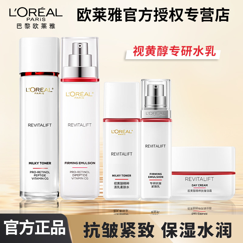 欧莱雅复颜视黄醇专研爽肤水乳液女生护肤品套装抗皱紧致补水保湿