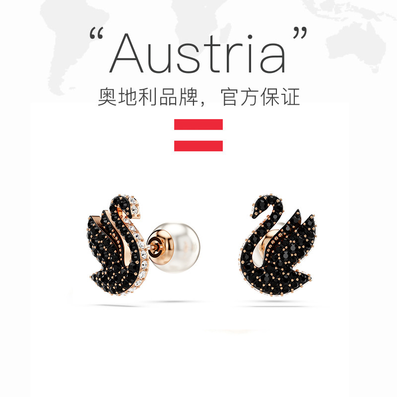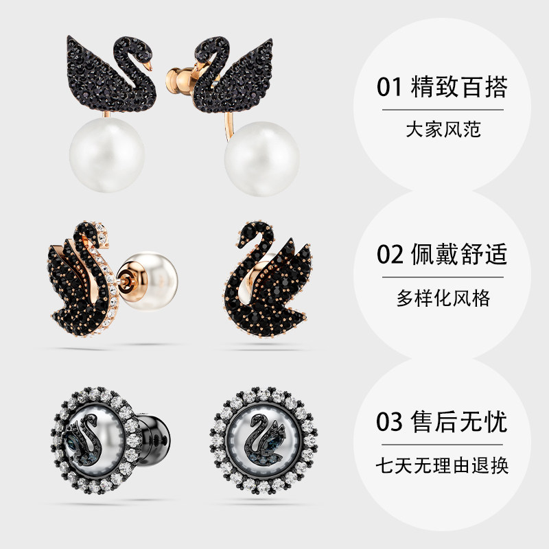 Swarovski/施华洛世奇Swan双天鹅优雅珍珠耳钉耳饰女轻奢配饰银色