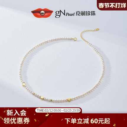 京润珍珠悦欢小米珠项链手链套装3-4mm近圆珍珠精致百搭生日礼物D