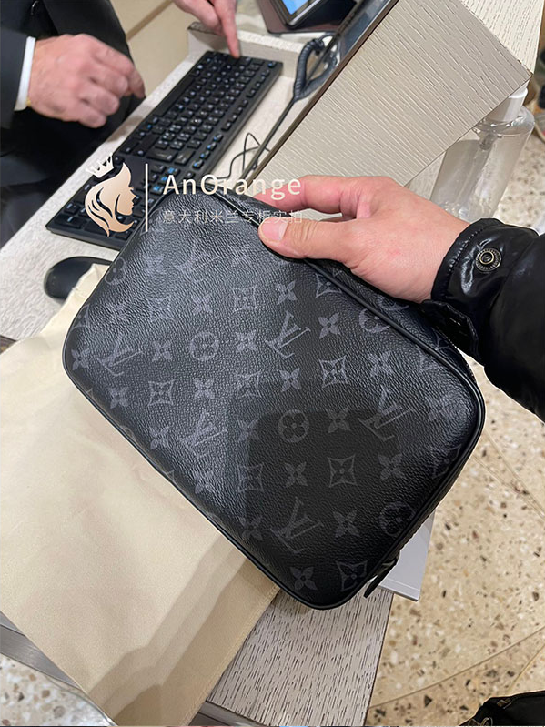 Louis Vuitton/路易威登LV男包黑色老花双拉链化妆包手拿包M43383